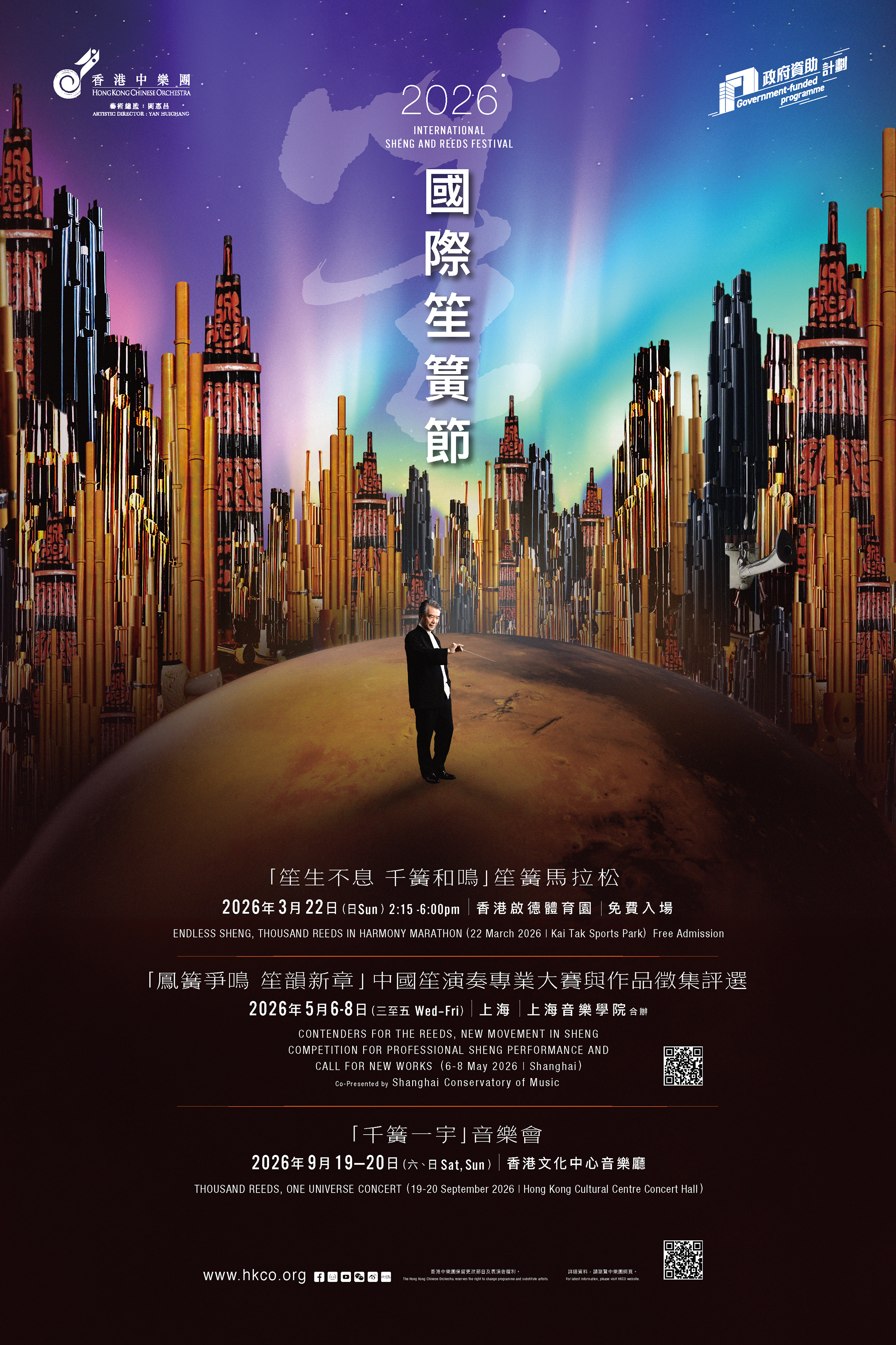 由香港中樂團主辦的「國際笙簧節2026」即將矚目登場!這場橫跨超過半年的文旅盛事旨在透過實體與線上的跨地域形式,將中樂打造為文旅融合的國際盛事。繼3月的笙簧馬拉松及黃昏戶外音樂會後,樂團將與上海音樂學院合辦國際學術論壇、中國笙樂大賽及作品徵集;整場盛事將於9月由世界各地著名笙演奏家與樂團合演的第50樂季揭幕音樂會「千簧一宇」劃上完美句號。